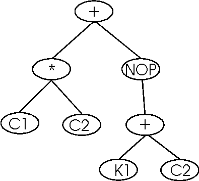 Cyclic graphs vs. Acyclic graphic trees Analyzing closely one of these "block topologies" we find that some of the blocks are connected in "closed loops" (that means: feedback) and some of them are not. This will become a problem because the representation of this is difficult. A graphic that has loops is called cyclic, and is more difficult to represent that one that has no loops on it. The latter can be represented using an Acyclic graph tree as the one shown in Figure 3 (also called rooted point-labeled tree with ordered branches). This kind of graphic notation is very used in some computer languages as LISP. The advantage of using this kind of notation will be seen when using the GP to do crossover or mutations. It is possible to create some kind of transformation that will map an existent topology (cyclic graph) into an acyclic graph, without loosing any information, and the converse. Usually, this mapping is one to many (one cyclic graph can be expressed by many acyclic ones, all of the equivalent).